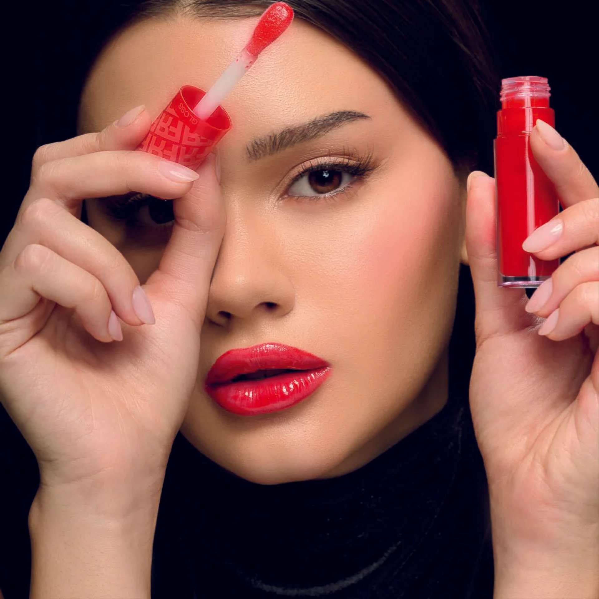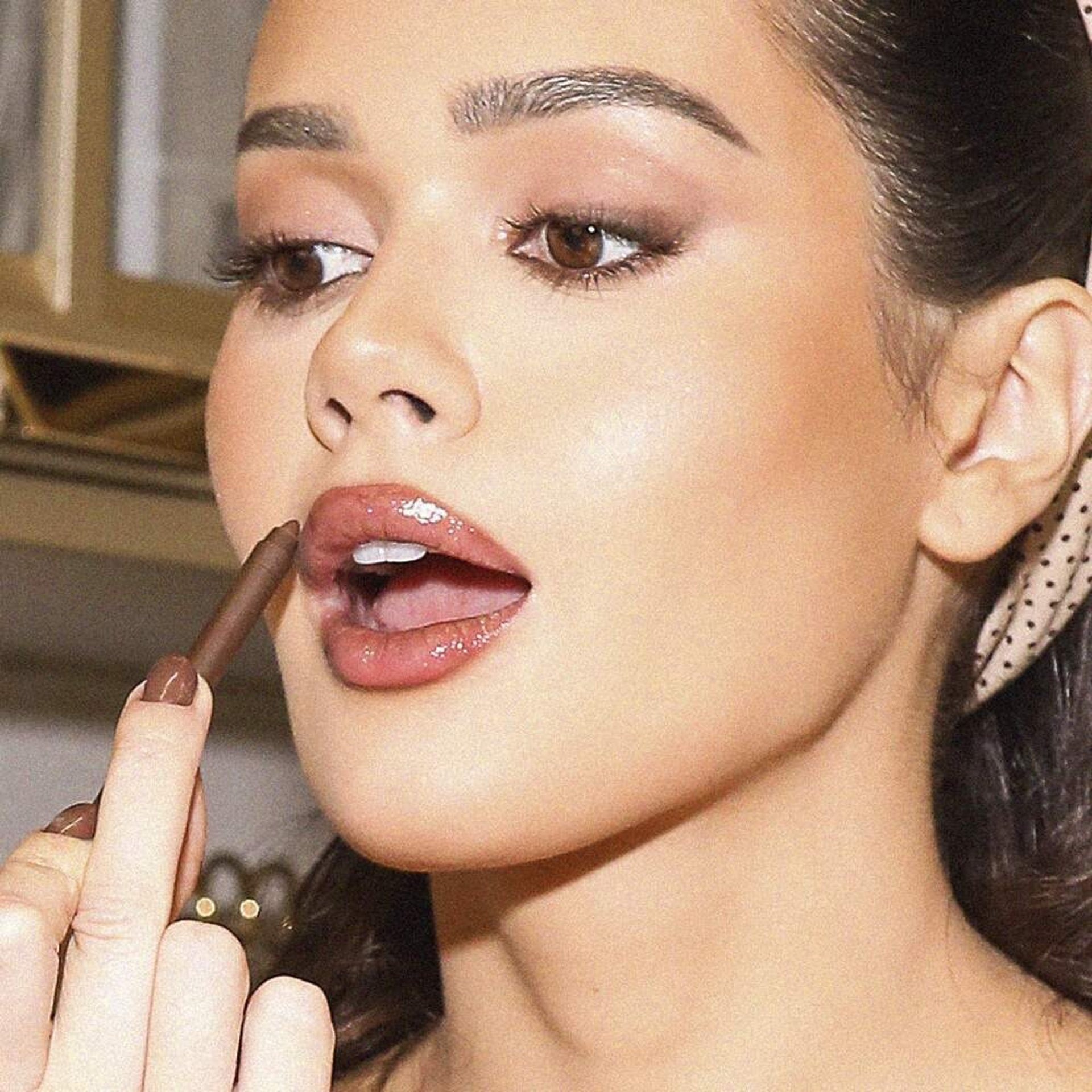 Aplique diretamente nos lábios conforme desejado com o próprio aplicador ou com um pincel para lábios.